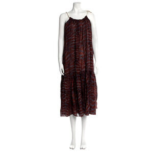 Cari tiger print maxi dress from ULLA JOHNSON featuring burgundy, blue, cotton blend, zebra print, tassel detail, sleeveless, scoop neck, scoop back and flared. New with partial tags.