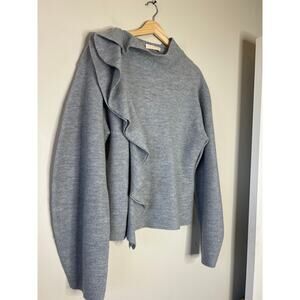 NEW Ulla Johnson Corinna Ruffled Pullover Sweater Sleeves Grey Size: Extra Large