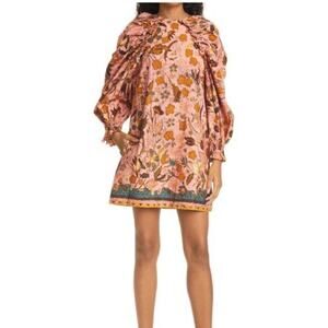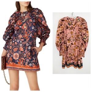 NEW Ulla Johnson Devya Mini Dress (Sz 0) Puff Sleeve Ruffle Trim Blush Floral