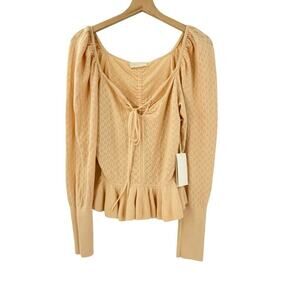 NEW Ulla Johnson Leland Pointelle Halter Ruched Peplum Top Sz M