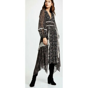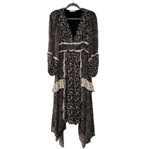 NEW! Ulla Johnson XS Primrose Dark Floral Silk Dress Boho Patchwork Long Sleeve