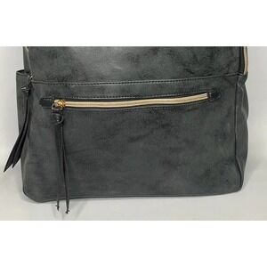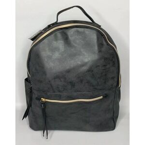 NEW Ulta Beauty Faux Distressed Black Vegan Leather Moto Backpack 15" x 12"