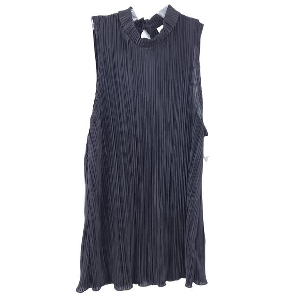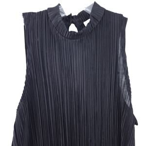NEW Ultra Flirt Sleeveless Blouse Crinkle Medium Black High Neck Top Blouse