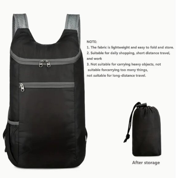 Unisex. NEW Ultra-Light Foldable Backpack Folds into a small pouch that easily stores anywhere until needed. Comfortable Design, Durable Polyester, Zippered Pockets, Portable Design, Ideal for Travel, Shopping, hiking, and outdoor adventures.