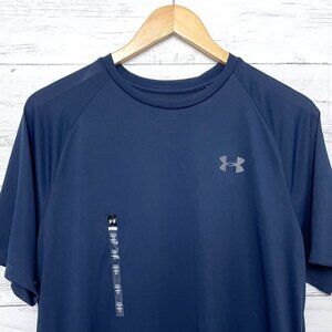 Description: New with tags Under Armour men's navy blue The Tech Tee, short sleeves, lightweight, Heat Gear, loose fit