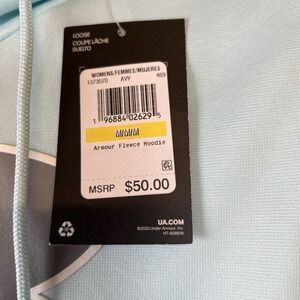 The NEW Under Armour Rival Fleece Logo Pullover Hoodie Sweatshirt for women in size medium is a stylish and comfortable activewear piece perfect for chilly days. Made with polyester and cotton fleece fabric, it features a pullover closure, long sleeves, and a hood for added warmth and coziness. The blue color and logo accents add a trendy touch to this Under Armour hoodie, which belongs to their Rival product line. Whether you're heading to the gym or meeting friends for a casual outing, this pullover hoodie is a versatile and fashionable choice for any woman's wardrobe.
