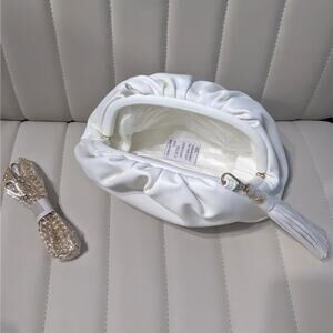 NEW Understated Leather Crescent Crossbody Chain Clutch Ivory Women's Size Small