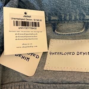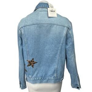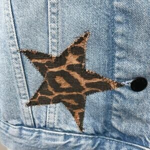 NEW Unemployed Denim Blue Star Leopard Patches Button Collar Jean Coat Jacket M