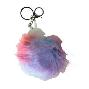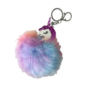 NEW Unicorn KEYCHAIN Ring 7" Faux Fur Tie Dye Puff Ball Purse Fob Pink Glitter