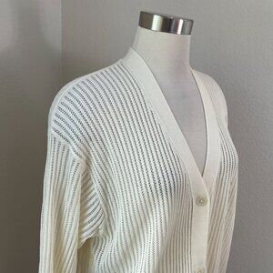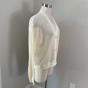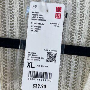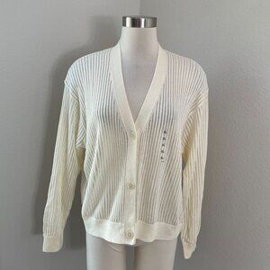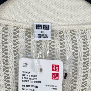 NEW Uniqlo Womens XL Mesh V Neck Long Sleeve Button Cardigan Sweater Cream