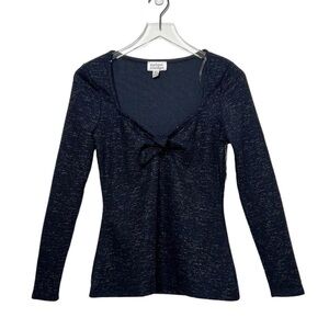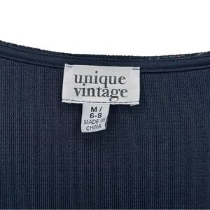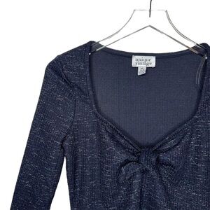 NEW Unique Vintage Navy Lurex Sweetheart Neckline Ribbed Fitted Sweater Sz M