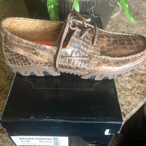 New in box Ferrini lace up driving moccasins. All leather gator print ladies loafers. Size 9 1/2B. Super comfy lightweight boat type shoes.