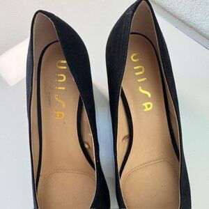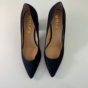 NEW Unisa Women's Uniletra Shoes Pumps Black Suede Block Heel Pointed Toe 11 M