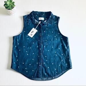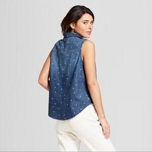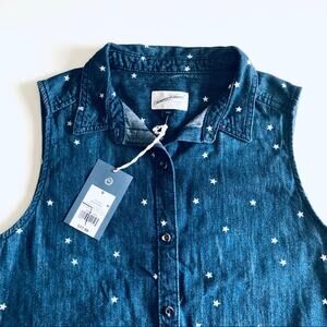 NEW Universal Thread SZ S Star Denim Chambray Button Tank Top Holiday Patriotic