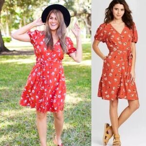 Universal Threads Orange Floral Button Front Puff Sleeve Dress