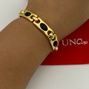 NEW Uno de 50 THE CROWN Gold Plated Black Crystals Bracelet