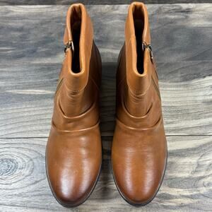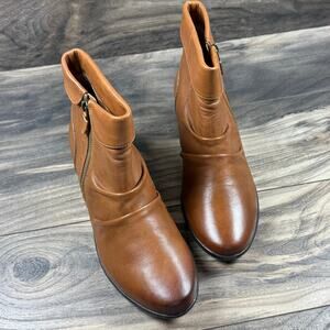 NEW Unstructured by Clarks 9.5M Rosely Zip Dark Tan Leather Ruched Ankle Boots