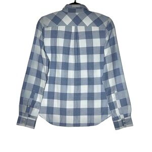 NEW Untuckit Volnay Plaid Button Down Western Shirt with Long Sleeves & Button Cuffs, Pointed Collar, and Chest Pocket, Blue, White, and Gray, Sizes 0 & 4.