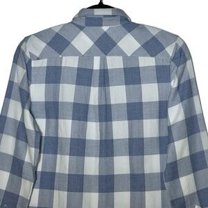 NEW Untuckit Volnay Plaid Button Down Western Shirt with Long Sleeves & Button Cuffs, Pointed Collar, and Chest Pocket, Blue, White, and Gray, Sizes 0 & 4.