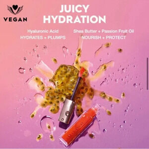 hydrating, vegan shine balm infused with hyaluronic acid for fuller, plumper lips, sheer, buildable color, and ultra-wet shine.