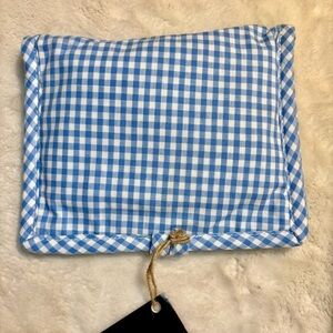 The Pack is Baby Blue and White in a Gingham pattern. Velcro Close.