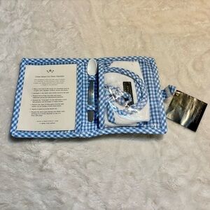 NEW Urban Infant Feeding Kit Bib Spoon Pack Baby Blue White Gingham Velcro Close