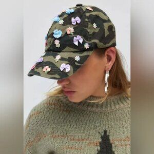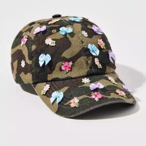 UO new with tags very cute Camo baseball hat topped with coquette-cool pastel bows n floral appliques