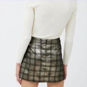 Urban Outfitters Gold and Black Metallic Plaid Mini Skirt. Size Small.