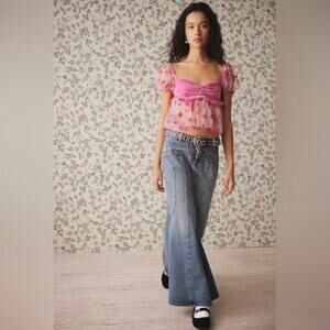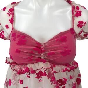 NEW Urban Outfitters Kimchi Blue Claudia Pink Floral Mesh Babydoll Blouse Top M