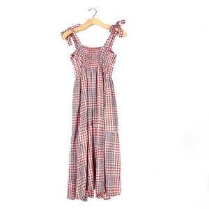 NEW Urban Outfitters UO Positano Linen Tie-Shoulder Midi Dress Red Gingham Small
