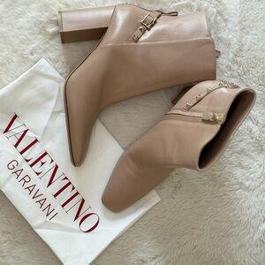 NEW VALENTINO ROCKSTUD LEATHER BLOCK HEEL BOOTIES