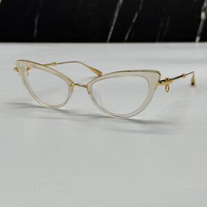 NEW VALENTINO V-DAYDREAM VLX-123C CAT EYE WOMEN GOLD/WHITE EYEGLASSES WITH CHAIN