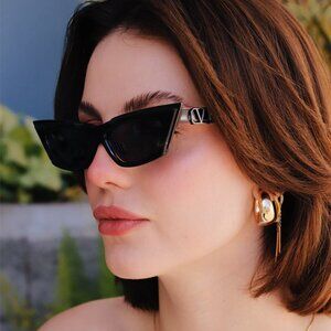 NEW VALENTINO V-GOLDCUT VLS-113B BLACK WOMEN CAT EYE SUNGLASSES VALENTINO