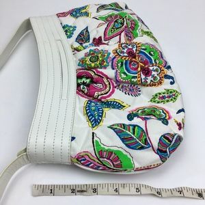 Women's new Vera Bradley white leather trim hobo bag. Shoulder bag, purse, handbag. Large paisley flower, floral botanical print, pattern. Green, blue, yellow, pink, brown. Multi-colored, colorful, fun. Casual cute street style streetwear. Boho chic, Bohemian, gypsy, hippie, festival. Trendy trending fashionable. Spring summer. Brand new w/o tags, but some flaws, spots on leather. See pics. Plastic still on plate (hence the bubbling). 10% off bundles!