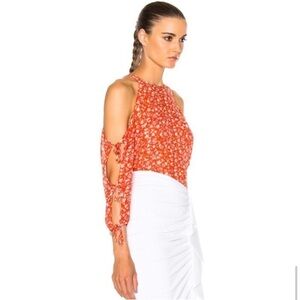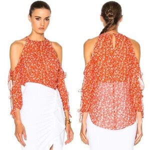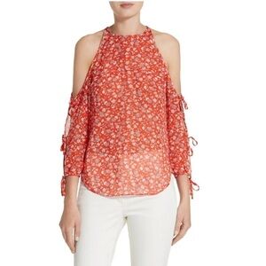 NEW! VERONICA BEARD Silk Flynn Bow Blouse Red Floral 2 Sheer Office Long Sleeve