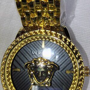 The Men's Versace watch is a stylish and sophisticated wristwatch designed for men. With the iconic Versace brand name, this watch exudes luxury and elegance. The sleek design and reliable functionality make it a perfect accessory for any man looking to make a statement with their timepiece. Whether for everyday wear or special occasions, this Versace watch is sure to impress with its timeless appeal and high-quality craftsmanship.