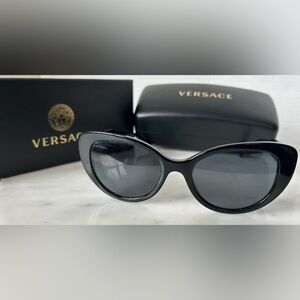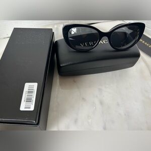 NEW VERSACE BLK CAT EYE, GOLD HARDWARE, ORIGINAL BOX, BOOKLET, MICROFIBER CLOTH