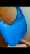 Authentic Versace bag in a pretty pop of color. A stunning sky blue in lightly grained calf leather. Curved silhouette hobo. Tonal three-dimensional Medusa plaque in center. Can be worn on shoulder or across the body. Adjustable strap. Lined in a contrasting purple-pink twill.