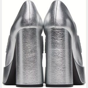 NEW VERSACE Size 38 IT, Women's Metallic Medusa Chain Platform Loafers - Silver