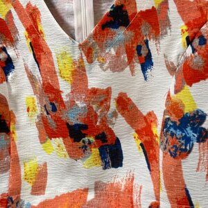 * Short sleeve mini dress in abstract floral ivory/orange/yellow