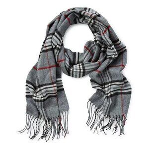 Elevate your winter style with this gorgeous V.FRAAS unisex gray plaid fringe scarf.