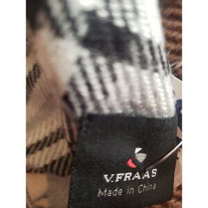 NEW V.FRAAS UNISEX GRAY PLAID FRINGE SCARF