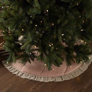 NEW! VHC Brands Sawyer Mill Red Ticking Stripe Ruffled 48" Christmas Tree Shirt
