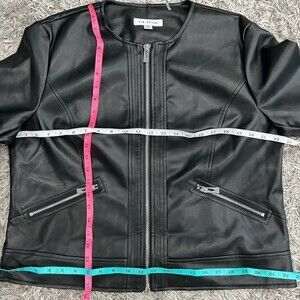 NEW VIA SPIGA Women Collarless Pleather Moto Jacket Black Size S or XL