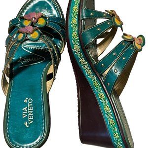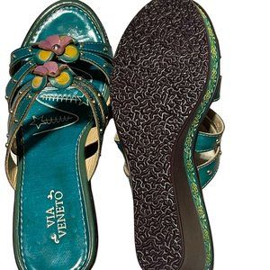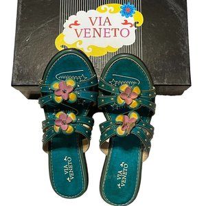 NEW VIA VENETO LADIES Wearable Art Slip-On LEATHER Floral PALAU Womens SIZE 7