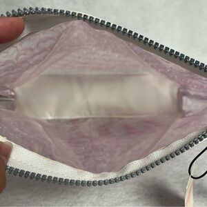 NEW Victoria Secret Pink cosmetic pouch inside looks like heart shaped bubble wrap bought a few years ago and never used NEW WITH DEFECTS dusty from being stored, brown marks on the inside bottom about 7 inches x 9 inches x 2.5 inches (at widest point) *soda can for size reference, not included in purchase