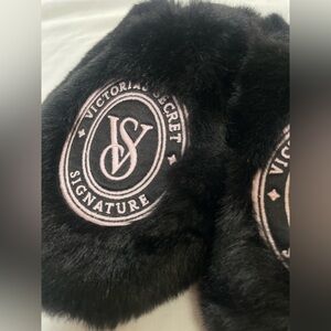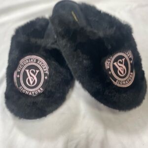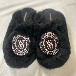 NEW VICTORIA'S SECRET Closed-Toe Faux Fur Slippers In Black S (US Size 5 & 6)