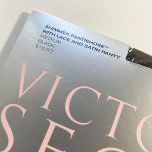 NEW VICTORIA'S SECRET "GLAMOUR SHEERS" MEDIUM BLACK PANTYHOSE W/BIKINI PANTY