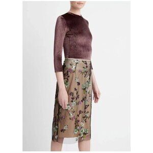 $525 VINCE Begonia Sequin Dewberry Brown Floral Pencil Knee-Length