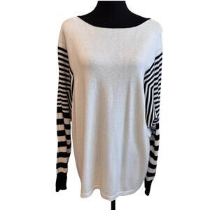 NEW VINCE CAMUTO Antique White Stripe Sleeve Sweater Size XXL